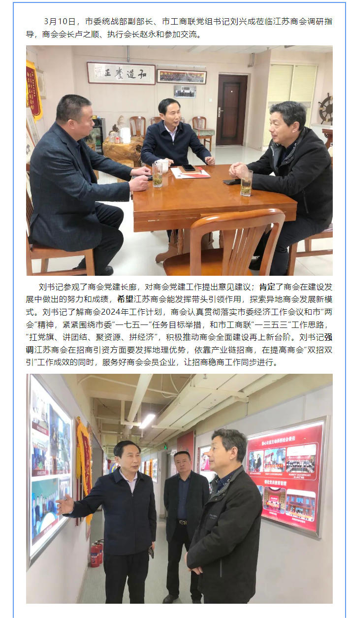 潍坊市江苏商会与您分享——市委统战部副部长、市工商联党组书记刘兴成莅临江苏商会调研指导