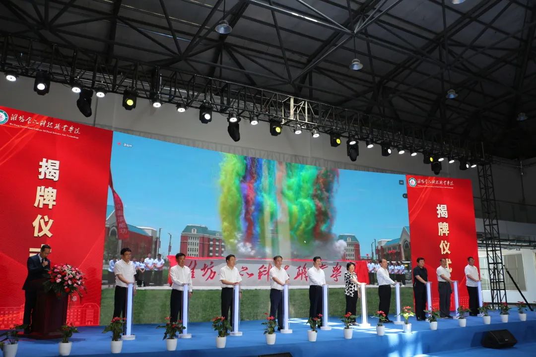 6月21日,"产教学研"一体化办学交流会暨潍坊食品科技职业学院揭牌仪式成功举行,至此,安丘市高等职业院校实现“零的突破”。江苏商会会长卢之顺、秘书长王国强参加揭牌仪式。