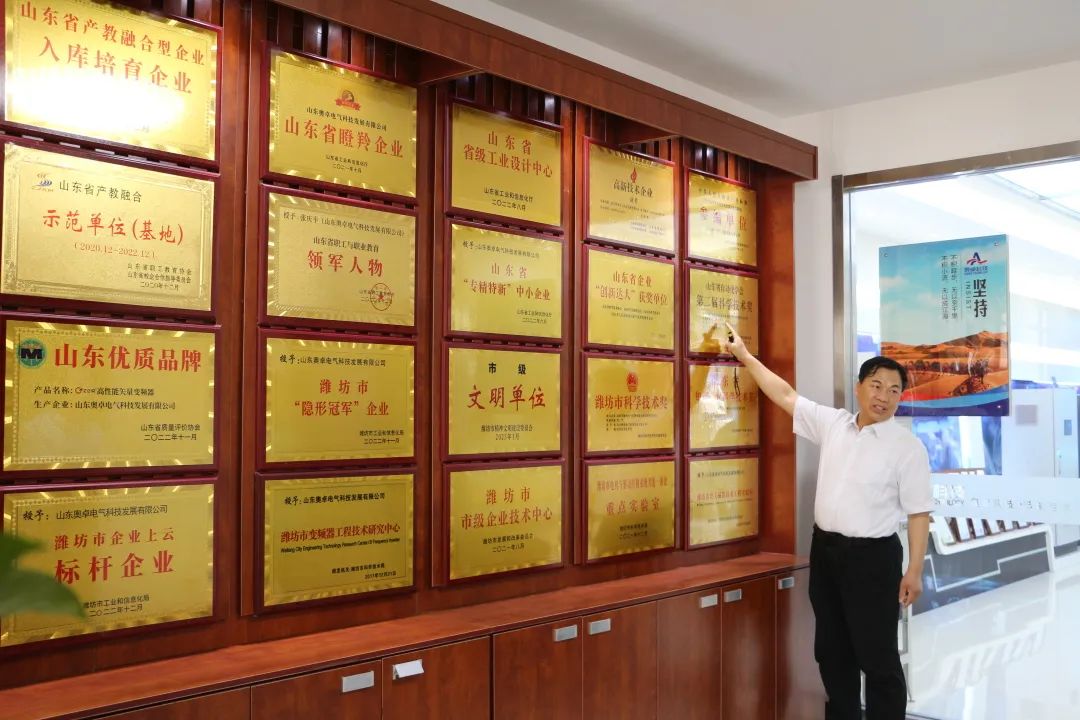 在张庆平总经理介绍下,商会一行详细了解奥卓电气发展情况和荣誉。