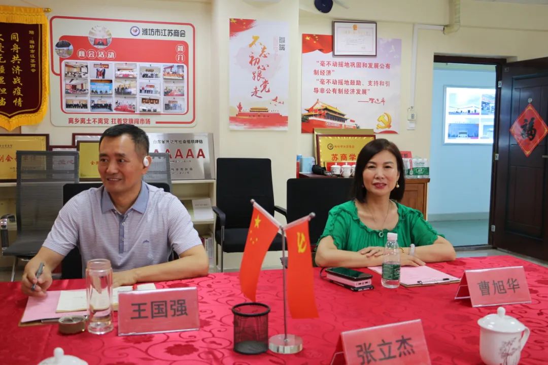 7月5日下午,潍坊市德州商会会长赵军带队到江苏商会走访交流,江苏商会会长卢之顺组织并主持座谈会,德州商会监事长张佃军、秘书长张胜华,副会长张立杰、宋彦程,副秘书长王旭,江苏商会执行会长赵永和、秘书长王国强、常务副会长曹旭华、理事吴艳霞参加座谈。