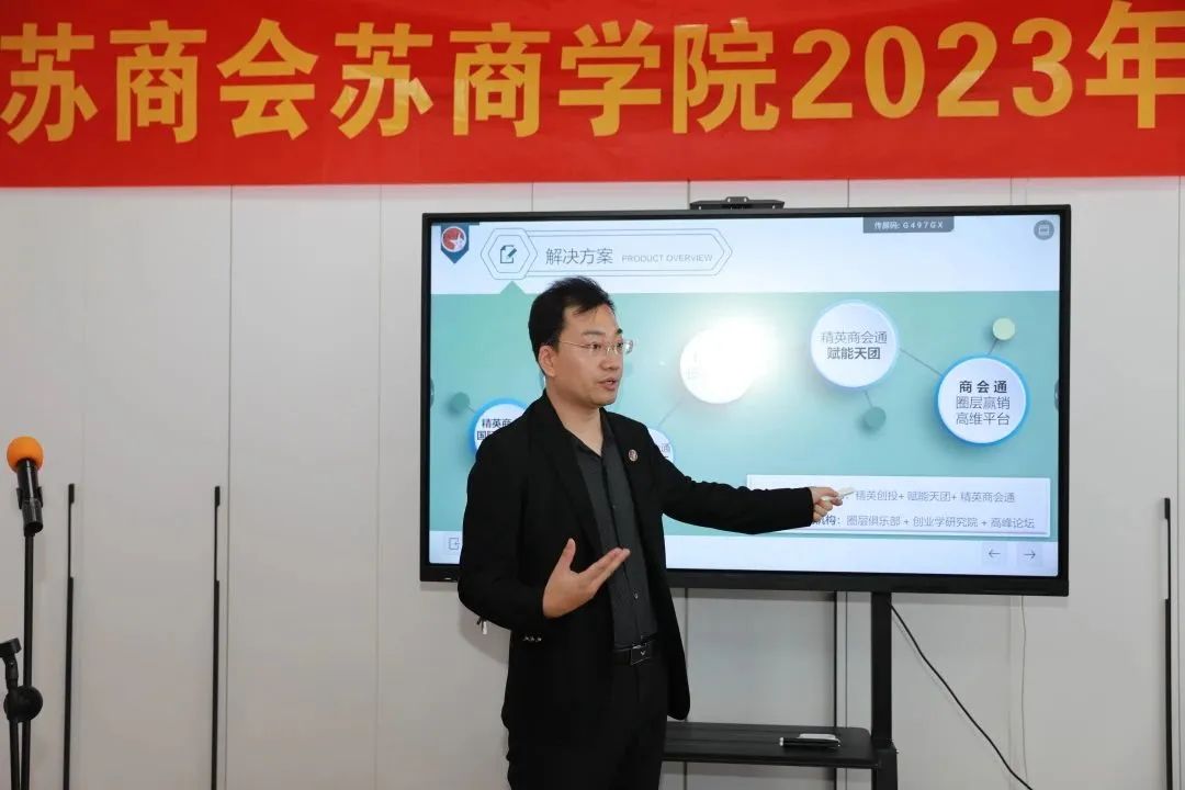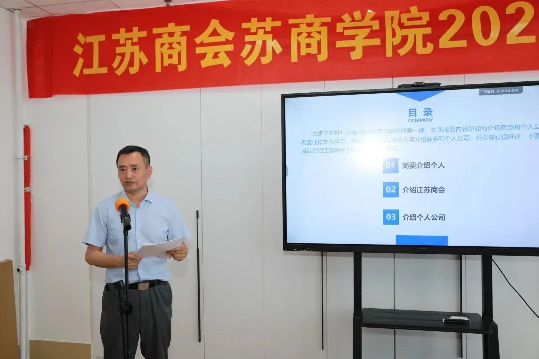 苏商学院院长王国强为大家讲授开班第一课“如何介绍个人公司及商会”,课程内容丰富,实用性强。