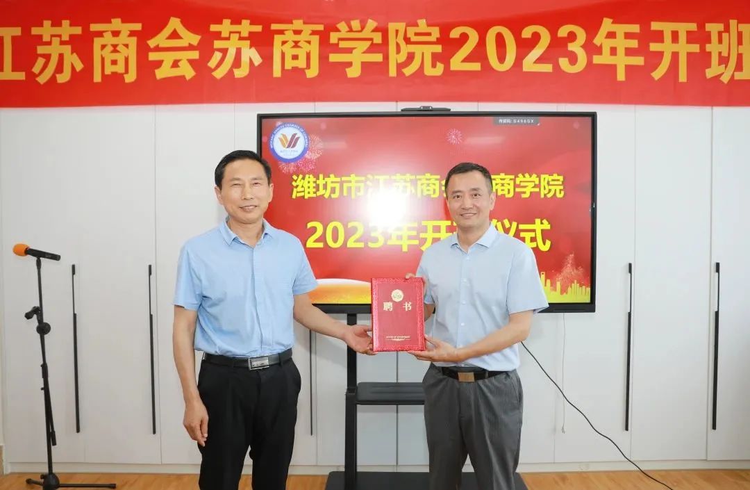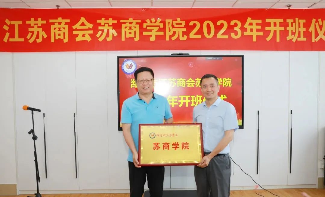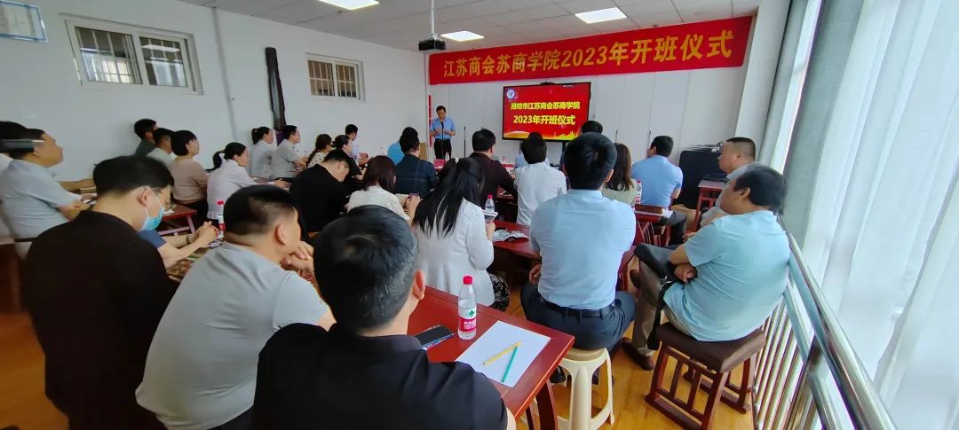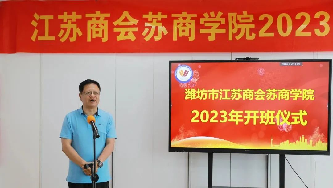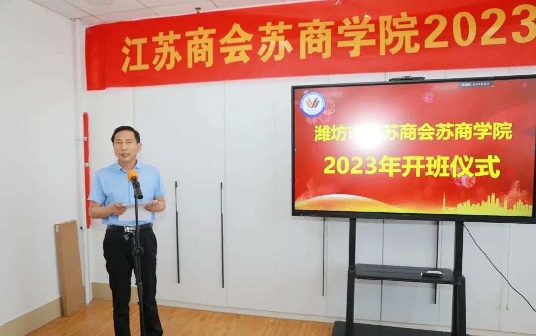徐书记发表致辞,他表示,江苏商会是所有在潍生活创业江苏人的“娘家”,商会走在前,成立苏商学院,传道、授业、解惑,为企业赋能,是一件对商会有利、对会员和新生代有利的好事情。市工商联也一直重视对企业家和年轻一代企业家的培训,为他们赋能,江苏商会要多听取会员企业的意见建议,开展多样化办学模式,把学习计划执行好,把课堂组织好,努力把苏商学院做成实战派、落地派。