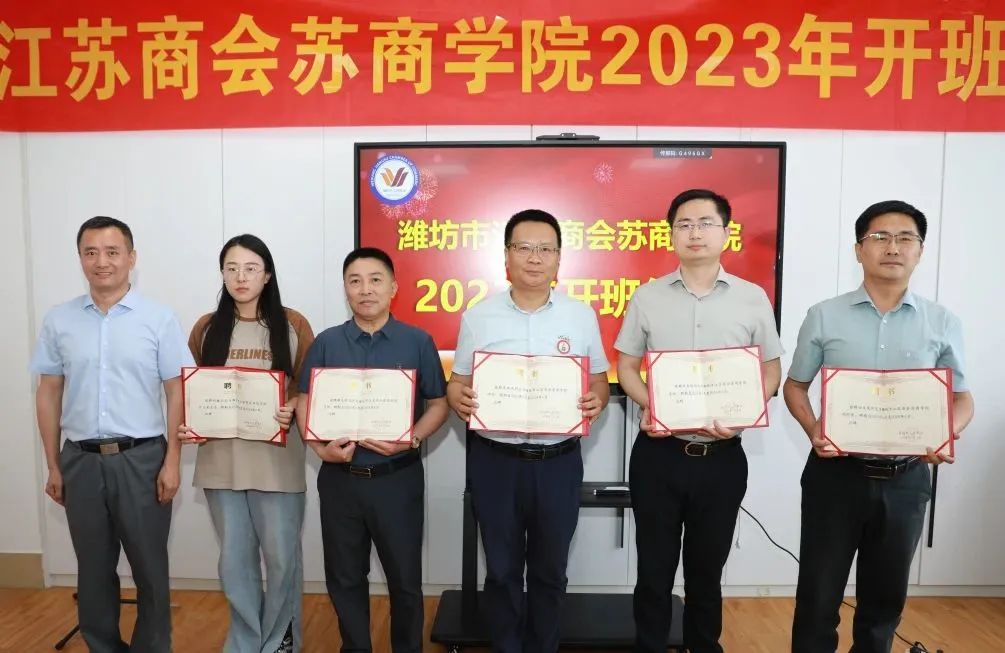 6月3日下午,江苏商会举办苏商学院2023年开班仪式,市委统战部副部长、市工商联党组书记、常务副主席徐凤徽出席活动并致辞,潍坊医学院党委委员、宣传部部长田玉胜,潍坊市工商联会员科科长王莉,大连理工大学潍坊校友会秘书长于涛、山东华闻管理咨询有限公司总经理李洪杰、潍坊明德书院副院长陈翠萍、东北证券股份有限公司潍坊东风东街证券营业部总经理周振华以及江苏商会会员、商会新生代参加开班仪式。