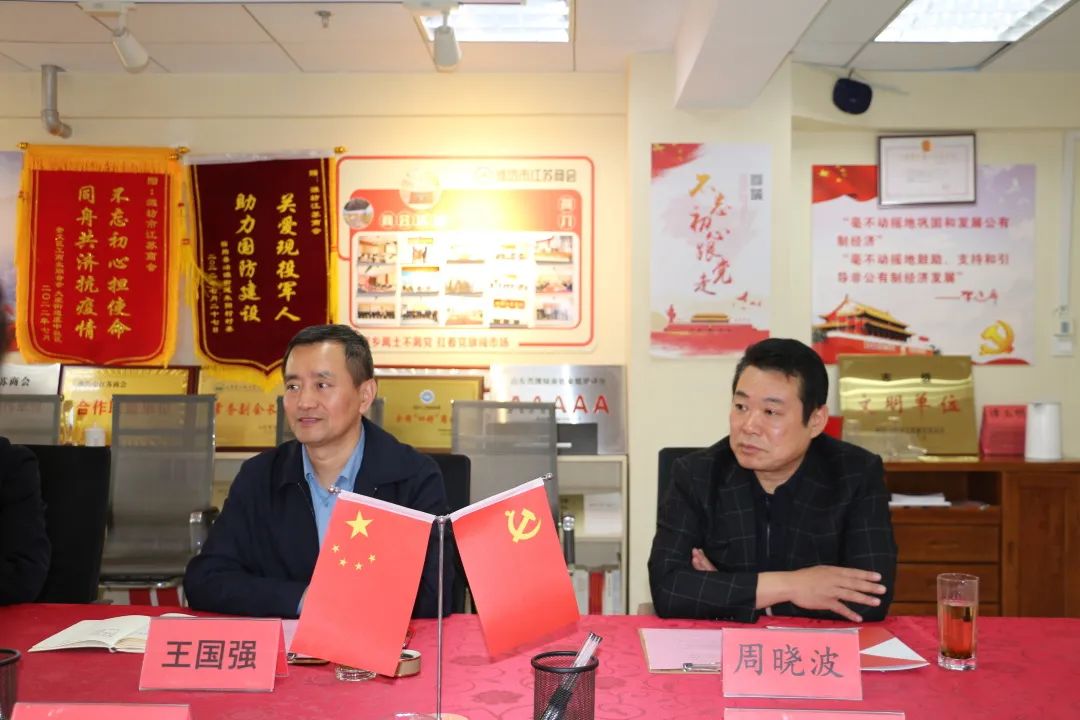 4月20日,北京钰鼎鑫盛科技有限公司、江苏星途新材料科技有限公司董事长崔建强,北京华信建业工程有限公司董事长张铁领,潍坊戎杰信息技术有限公司总经理隋杰一行到商会走访交流,会长卢之顺组织并主持座谈,值班会长袁亦军、秘书长王国强、常务副会长周晓波、山东顺凯文化创意产业有限公司总经理卢玉剑参加座谈。