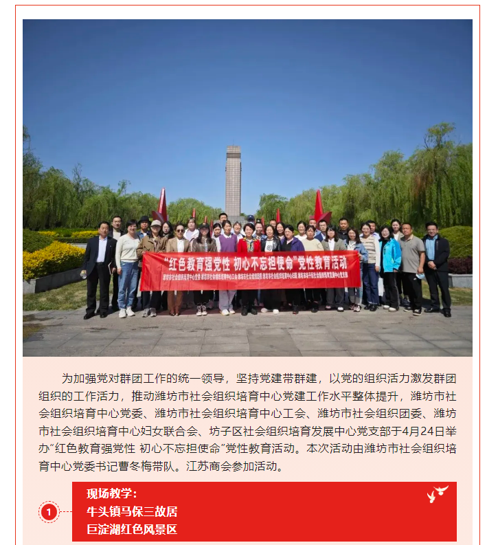 潍坊市江苏商会与您分享——“红色教育强党性 初心不忘担使命”党性教育活动顺利举办