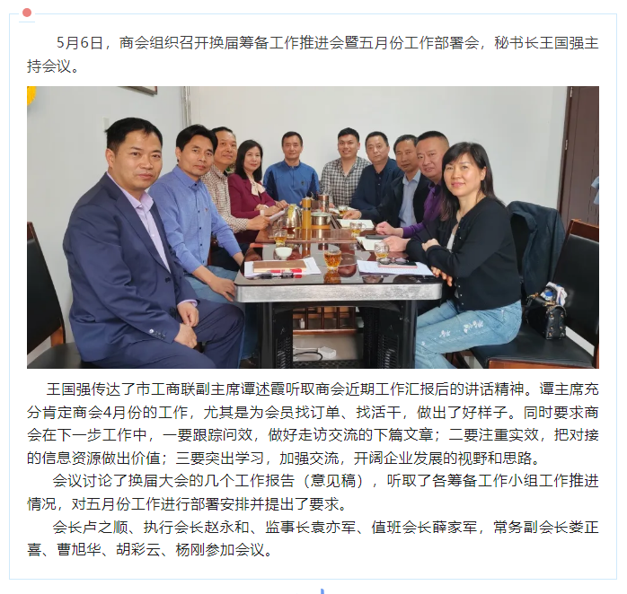潍坊市江苏商会与您分享——商会召开换届筹备工作推进会暨五月份工作部署会