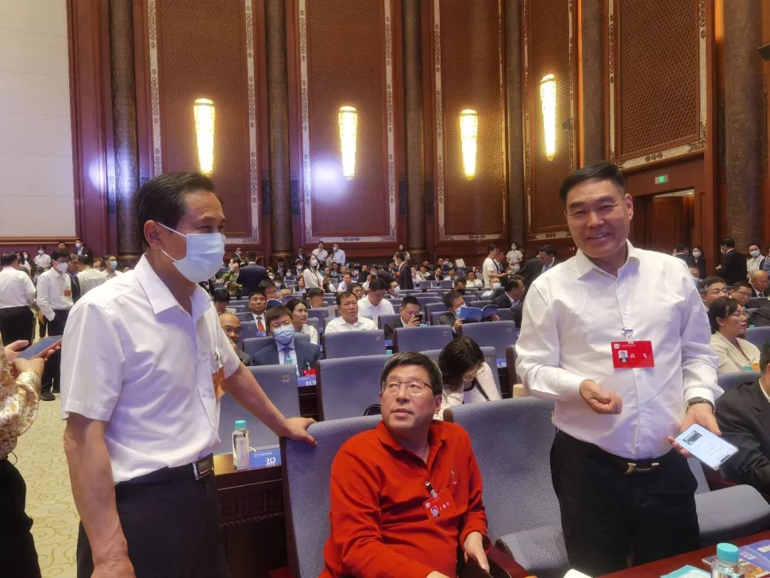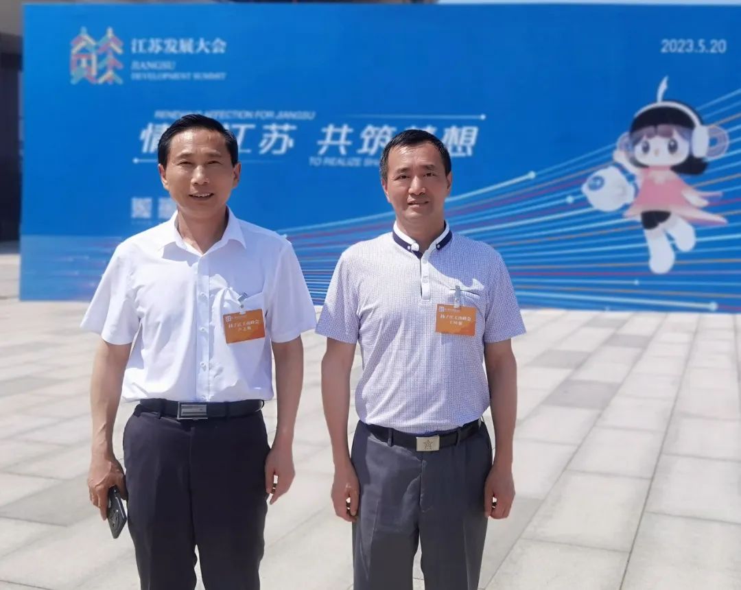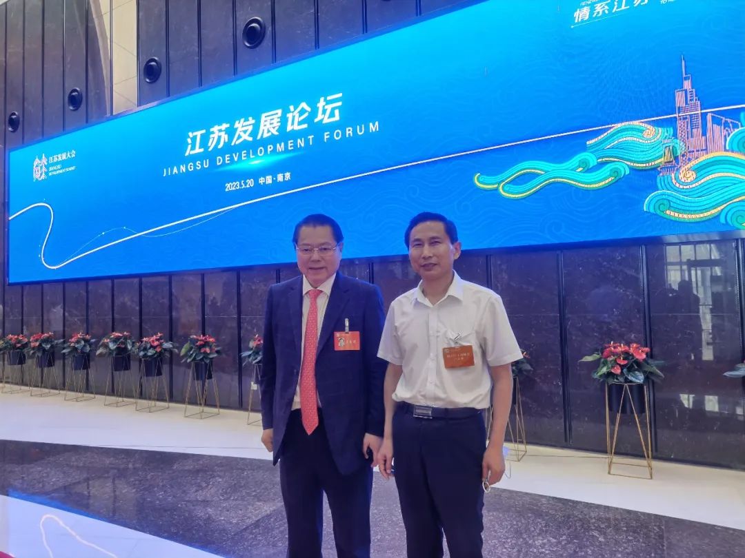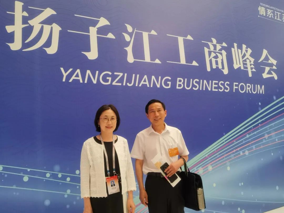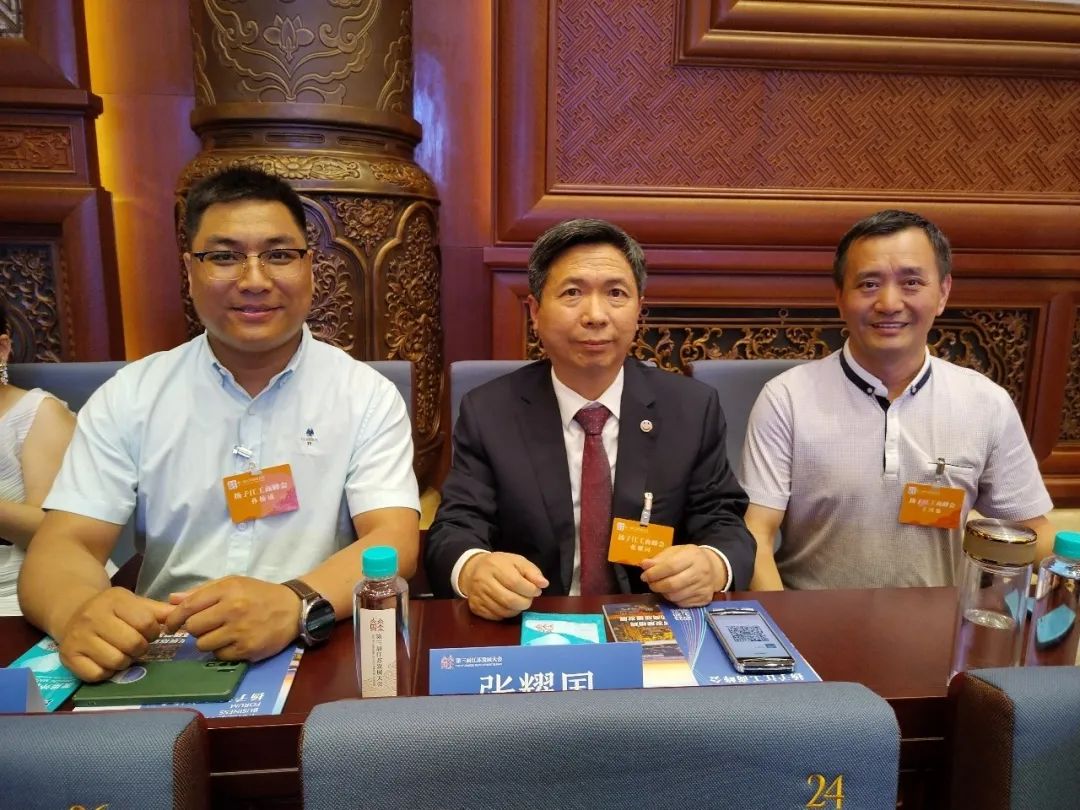与上海市江苏商会会长丁佐宏、山东省江苏企业商会会长高飞交流。