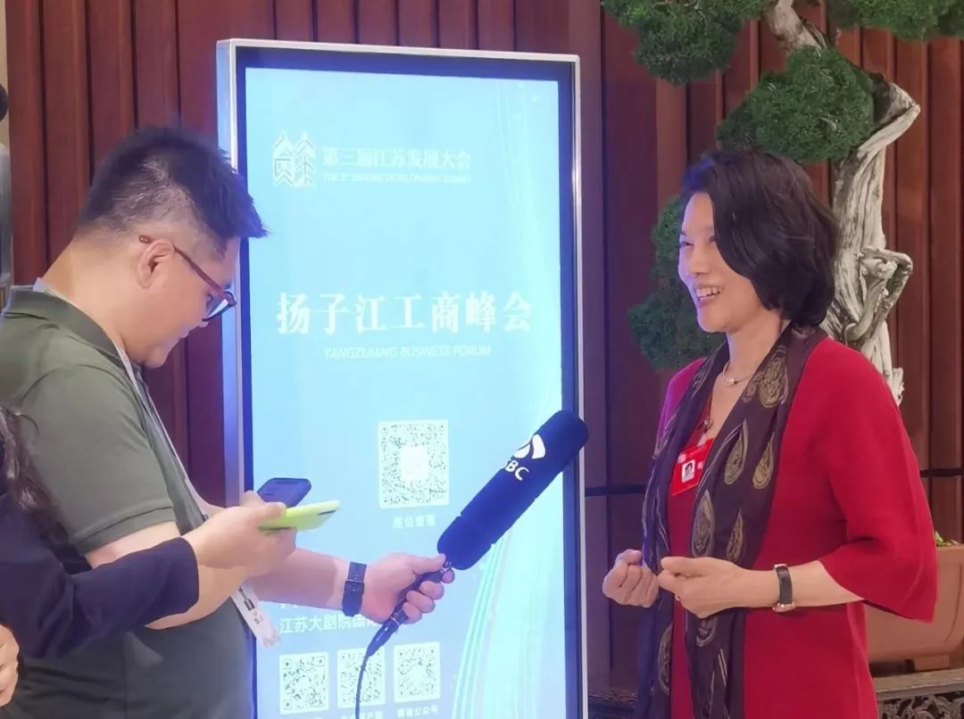 知名苏商董明珠在论坛分享和接受采访。